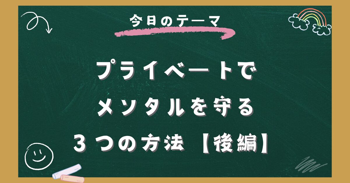 (※前回の「メンタルの保ち方 職場編」は、👉️通級担当のメンタルを守る方法|職場でのストレス対処法【前編】から)