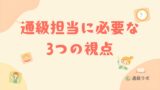 通級担当の仕事の範囲は学校によって大きく異なります。「どこまでが自分の仕事なの?」「学担やコーディネーターとの線引きは?」と悩む方は多いです。通級担当に必要な3つの視点の記事でも詳しく解説しています。